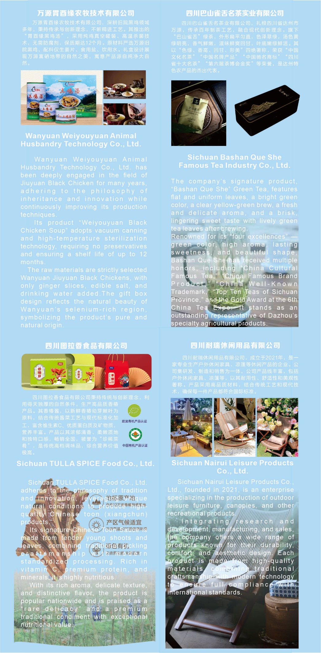 Southeast Asia and China are geographically close and share compatible tastes. The pursuit of natural and healthy high-quality products here highly aligns with Dazhou's philosophy of "building reputation with quality". This special brochure for "Dazhou Products Going Global, Shared Worldwide" serves as a bridge connecting the two sides. Open it, savor the flavors of eastern Sichuan, and embark on a quality journey across mountains and seas.