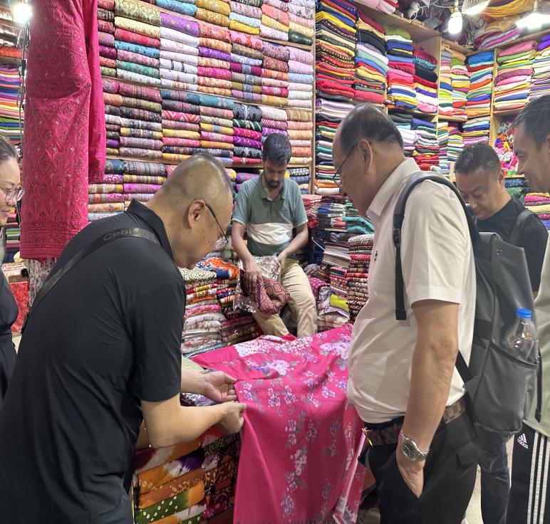 On the afternoon of September 11 (local time), under the organization of the Nantong Municipal Bureau of Commerce and Nantong Foreign Trade Group Co., Ltd., the Nantong delegation visited the Association of Chinese Enterprises in Bangladesh and the Islampur Wholesale Fabric Market for exchanges and discussions.Through this visit, the Nantong group gained an in-depth understanding of the local textile production processes and engaged in professional dialogues with several member companies of the association, actively exploring new avenues for cooperation. The program also arranged for Nantong enterprises to directly observe the real operations of the local wholesale market, gaining sharp insights into consumer preferences and the latest product trends. Face-to-face meetings with local companies further built a practical and efficient cooperation bridge between the two sides.