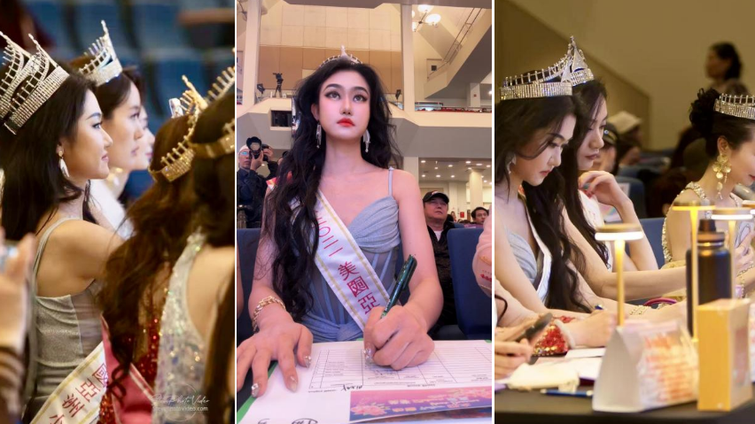 Yaxin Han presented an award at the 2025 International USA Miss Asia Pageant