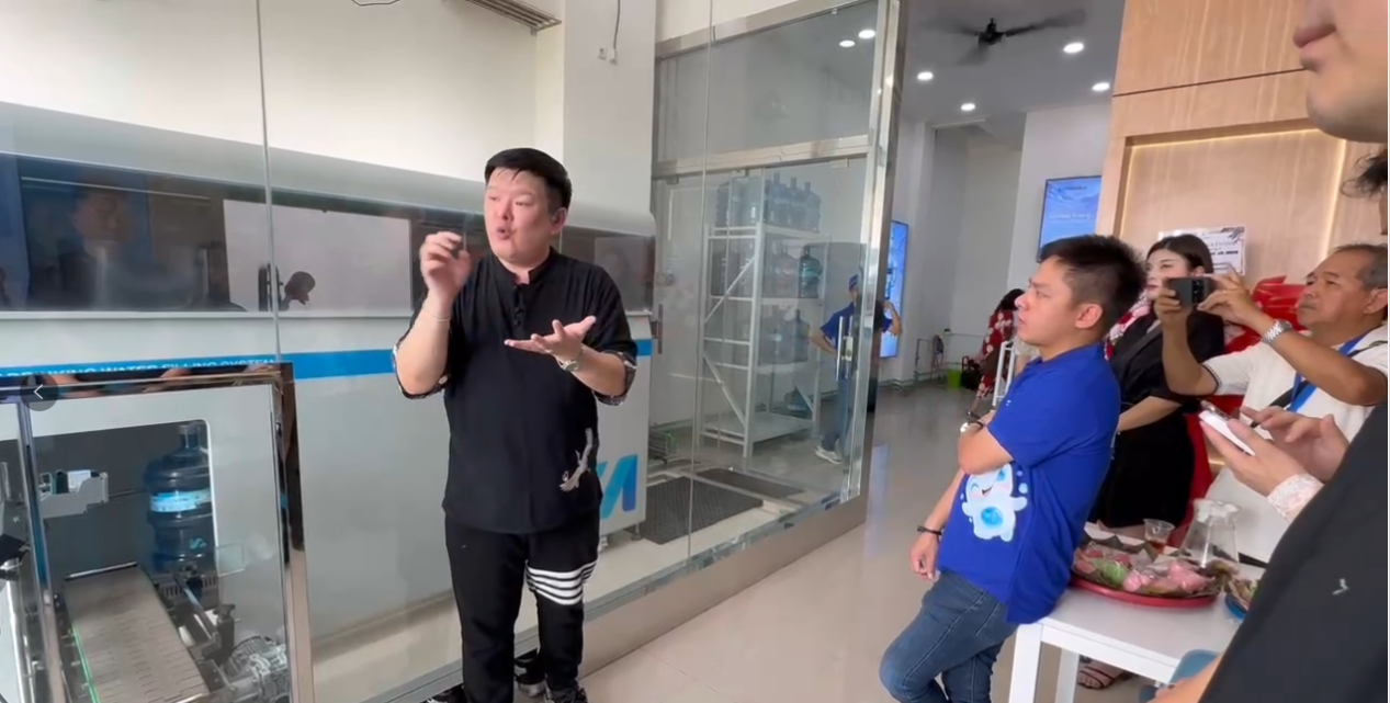 DATO Joey juga menjelaskan lebih lanjut tentang teknologi dan layanan inovatif VIVIDAQUA. Dia berkata, "Sistem pengolahan air kami menggunakan teknologi otomatisasi canggih dan terintegrasi sempurna dengan sistem IoT, memungkinkan pemantauan dan pengendalian jarak jauh dari seluruh proses pengolahan air. Integrasi ini memastikan efisiensi dan akurasi operasional yang tinggi, secara signifikan mengurangi kebutuhan intervensi manusia, meningkatkan standar keamanan dan kebersihan dalam proses produksi. Selain itu, peralatan kami mendukung proses pengisian tanpa kontak, memastikan bahwa setiap langkah dari sumber ke wadah tidak memerlukan sentuhan manusia, secara signifikan mengurangi risiko kontaminasi silang. Teknologi pengolahan canggih ini tidak hanya memastikan keamanan sanitasi produk air tetapi juga memenuhi standar tinggi konsumen modern terhadap kesehatan dan kebersihan."