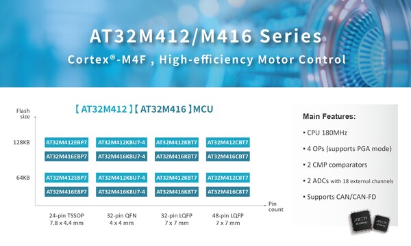 Currently,AT32M412 and AT32M416 series products are available for samples and mass production.