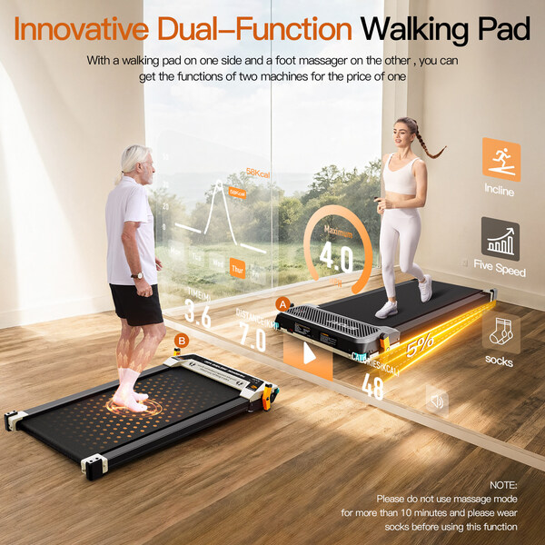 Akluer's latest innovation is set to transform home fitness by integrating a treadmill and a foot massager into one stylish and space-saving device. The Akluer Treadmill is designed to cater to users of all ages and body types,making it an ideal addition to any household. Its multifunctional design not only saves space but also provides a seamless transition between high-intensity workouts and soothing relaxation sessions.