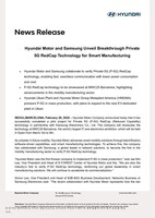 SEOUL,South Korea and BARCELONA,Spain,Feb. 26,2025 -- Hyundai Motor Company announced today that it has successfully completed a pilot project for Private 5G (P-5G)RedCap (Reduced Capability) technology in partnership with Samsung Electronics Co.,Ltd. The company will showcase the technology at MWC25 Barcelona,the world's largest IT and electronics exhibition,which will be held in Spain from March 3rd to 6th.