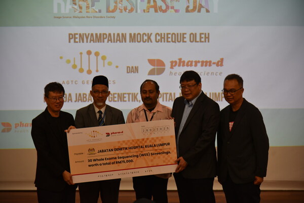 A highlight of the event was the mock cheque handover ceremony,where AGTC Genomics sponsored and Pharm-D Health Science supported the contribution of RM75,000 worth of whole exome sequencing (WES) tests for underprivileged patients. This funding will enable critical genetic testing,which is often a significant financial burden for affected families.
