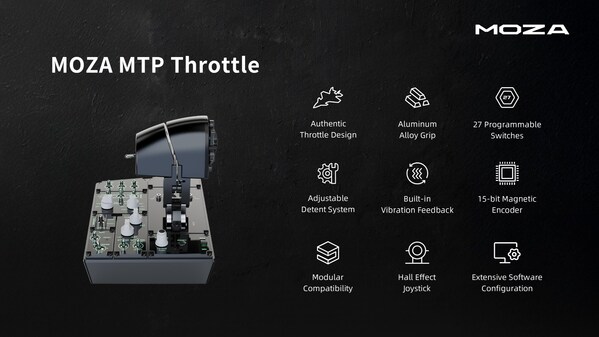 The MOZA MTP Throttle offers precise control with 27 programmable switches and customizable detents. Crafted from aluminum alloy and equipped with a Hall-effect joystick,it ensures smooth,accurate throttle input. Integrated with MOZA Cockpit software,it provides flexibility for a fully personalized flight experience.