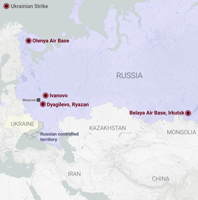 Codenamed ‘Operation Spiderweb’,at least 40 war planes were hit by drones which were smuggled into Russia and then launched remotely off the back of trucks.