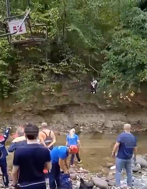 The chairlift snap sent people plunging into the water (Picture: Telegram)