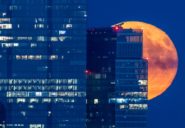 The moon made a stunning addition to the Manhattan skyline (Picture: Nazli Zeynep Karabulut/Anadolu via Getty Images)