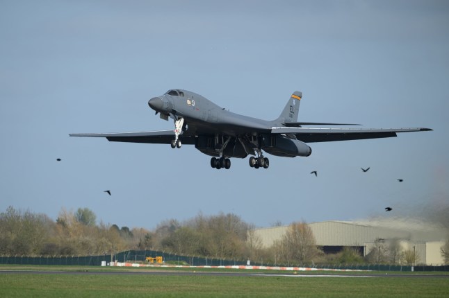 A Rockwell B1 Lancer heavy bomber at RAF Fairford,which the US is using to launch raids (Picture: Leon Neal/Getty Images)