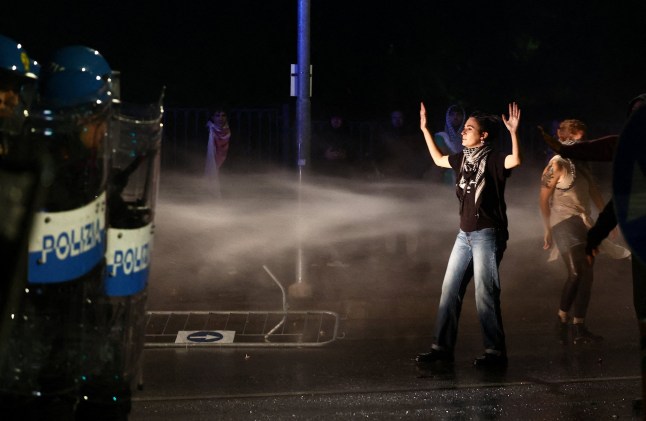 Water cannons were brought out and tear gas was fired in a bid to stop the chaos.